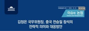 [입법정책뉴스] 지난 9월 3일 북한 김정은 국무위원장이 중국 전승절 80주년 기념식에 참석하면서, 국제사회의 이목을 끌었다. 이와 관련해 국회입법조사처는 '김정은 국무위원장, 중국 전승절 참석의 전략적 의미와 대응 방안' 이라는 보고서를 발간했다.