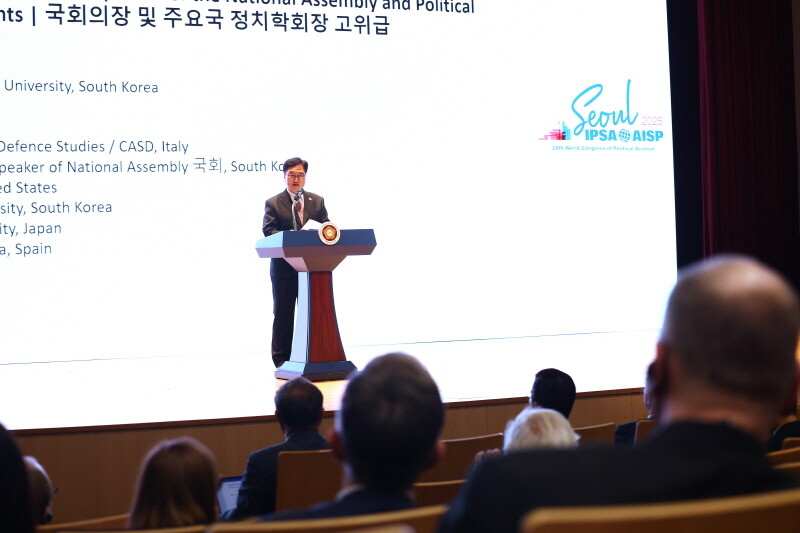 [입법정책뉴스] 우원식 국회의장은 16일 오후 서울 코엑스에서 열린 '2025 세계정치학회(IPSA) 서울총회' 고위급 라운드테이블 기조연설과 폐막식에 참석했다.