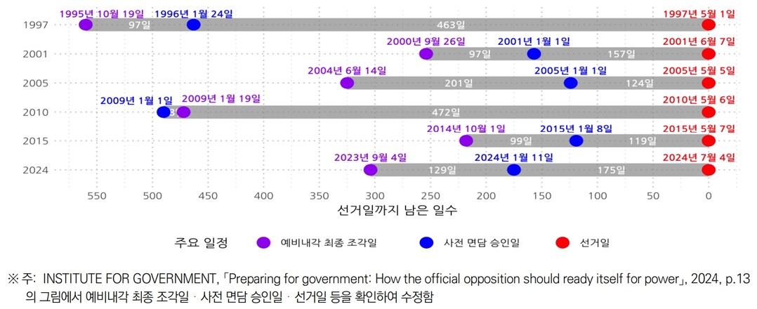 사전 면담 개시 일정은 정해져 있지 않지만, 보통 총선이 실시되기 12개월-16개월 전에 하는 것이 일반적이다. 정권교체가 이뤄졌던 1997년과 2010년에는 총선일 기준 16개월 이전에 사전 면담이 개시되었지만, 집권당이 유지되었던 총선에서 사전면담이 개시된 기간은 상대적으로 짧았다.